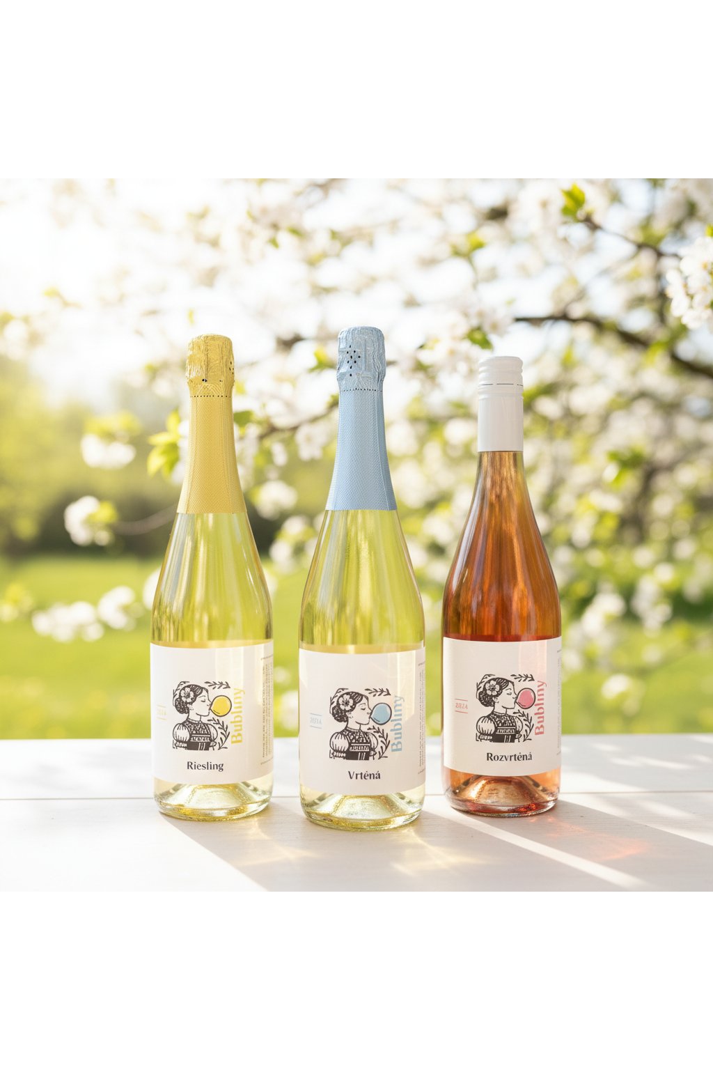 V jedné krabici najdete hned tři různé tváře frizzante – elegantní suché z Ryzlinku rýnského, hravé aromatické cuvée Vrtěná (Sauvignon a Veltlínské zelené) a svěží polosuché rosé Rozvrtěná z odrůdy Zweigeltrebe.
